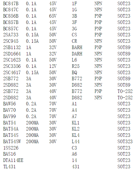 下面給大家看下貼片三極管的絲印含義: