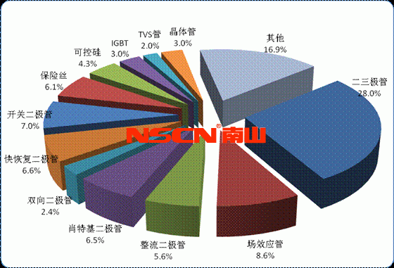 通過圖(4)可以看出,目前半導(dǎo)體分立器件用戶需求較多的二三極管,而且年度采購需求量非常旺盛。隨著電子整機、消費類電子產(chǎn)品等市場的持續(xù)升溫,半導(dǎo)體 分立器件仍有很大的發(fā)展空間,從發(fā)展趨勢看,無論是全球還是中國,分立器件在電子信息產(chǎn)品制造業(yè)中銷售額度所占比例正在逐步下降,分立器件產(chǎn)量和產(chǎn)值的增 長速率要低于整機系統(tǒng)的增長速率。另一方面,整機系統(tǒng)的快速發(fā)展,也為分立器件行業(yè)提供了新的市場商機。特別是全球電子整機對節(jié)能、環(huán)保需求的不斷增長, 這一方面帶動了分立器件產(chǎn)品的需求增長,另一方面也帶動了市場產(chǎn)品結(jié)構(gòu)的快速升級。整機系統(tǒng)進一步向小型化、集成化方向發(fā)展的趨勢,對分立器件也提出了新 的要求,片式貼裝器件已經(jīng)成為行業(yè)發(fā)展的主流。
