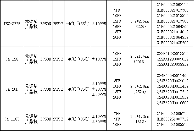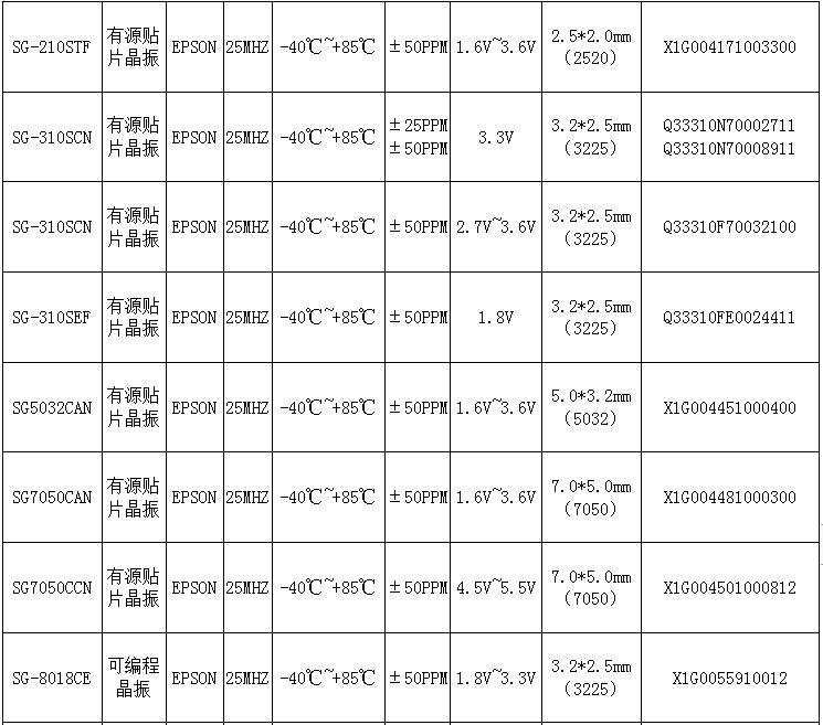 通過這個表格,我們可以很清晰的看到25MHz晶振的工作溫度,封裝尺寸以及工作電壓,這樣就很容易判斷出應該用哪一個型號亦或者到底使用25m無源晶振還是25m有源晶振,今天就分享這些給大家,南京南山電子作為愛普生官方授權中國區(qū)代理商,歡迎大家來電垂詢,或者網上訂購!