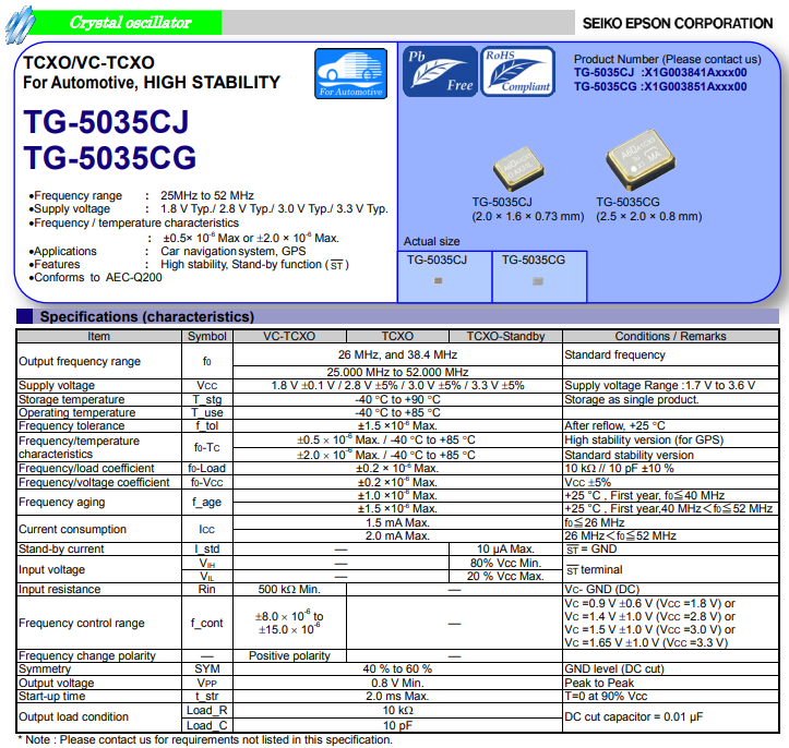用于汽車(chē)無(wú)線(xiàn)通信系統(tǒng)中車(chē)規(guī)級(jí)溫補(bǔ)晶振:TG-5035CJ和TG-5035CG