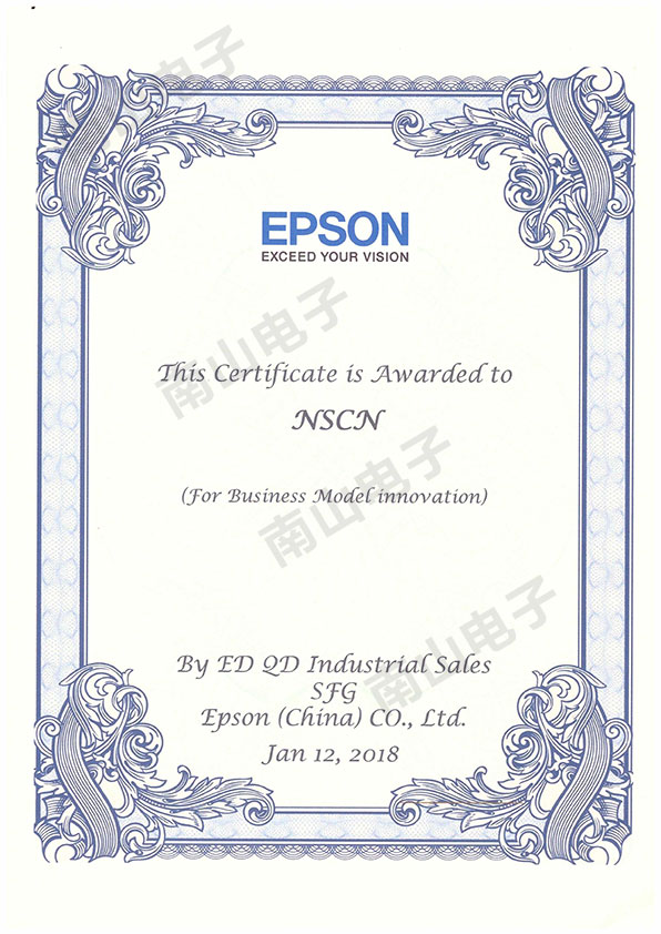 為此,愛普生在2018年1月12日向南山電子授予商業(yè)模式創(chuàng)新獎,并頒發(fā)了證書。