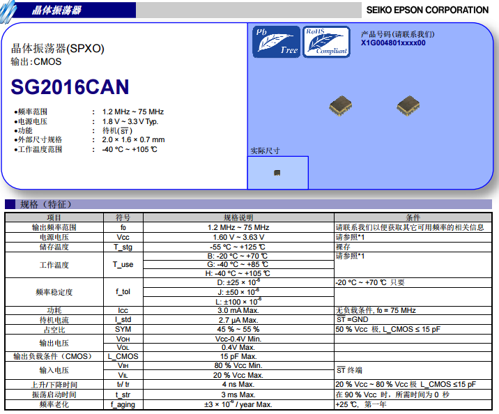 5G晶振:SG2016CAN,SG2016CAN 24.576000 MHz TJHA 料號(hào)X1G004801003100...