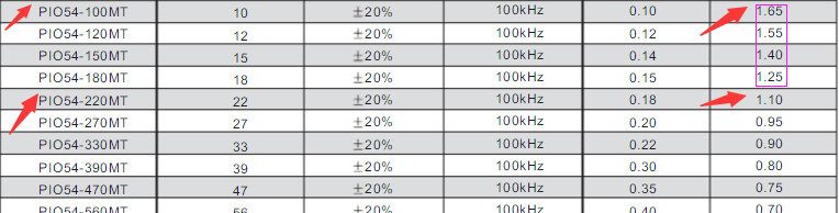 PIO54-220MT 電感22uh 公差±20% 測(cè)試頻率100kHz 直流電阻MAX 0.180Ω 飽和電流1.10A