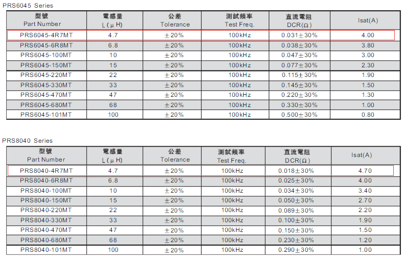 如上圖所示:同樣是4.7uh電感,技術(shù)已經(jīng)確認(rèn)電路可以用將PRS8040 8x8mm可以換成6x6mm,那么在精度公差都是20%,測(cè)試頻率都是100khz情況下,那么問(wèn)題就出在電流上,他們工作額定電流是4.1A,原來(lái)使用8040時(shí) 飽和電流是4.7A可以滿(mǎn)足工作電流通過(guò),而現(xiàn)在換成6045,雖然尺寸上滿(mǎn)足,但是最關(guān)鍵一點(diǎn)飽和電流4A,無(wú)法滿(mǎn)足工作電流,所以大家在選型過(guò)程中一定要當(dāng)心,如果拿不準(zhǔn)可以讓我們南山電子提供技術(shù)支持,當(dāng)然除了上述4.7uh貼片功率電感之外,南山還提供風(fēng)華高科各種系列貼片電感,高頻電感,一體成型電感,在本公司某寶店鋪——南山E店均有現(xiàn)貨,歡迎廣大新老顧客來(lái)電垂詢(xún),選型交流。