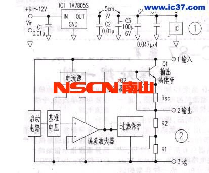 在應(yīng)用三端穩(wěn)壓器時(shí),一般都在其輸人端和輸出端各接一支0.1w0的小電容器,以保證其穩(wěn)定工作。圖1是一個(gè)5V穩(wěn)壓電源,在組裝電路時(shí),恰遇庫(kù)房0.1 wF電容斷貨幾于是用0.01 wF電容代替,考慮到后續(xù)電路還并有多個(gè)旁路電容,以為并無(wú)大礙。在電路板上,C1、C2緊靠三端穩(wěn)壓器安裝,電解電容C3距三端穩(wěn)壓器5cm,而旁路電容C4-C7則靠近各自的IC. 電路通電后,發(fā)現(xiàn)三端穩(wěn)壓器輸出電壓不穩(wěn)定,最后確定是三端穩(wěn)壓器產(chǎn)生了振蕩。 圖2是三端穩(wěn)壓器的內(nèi)部結(jié)構(gòu)框圖,內(nèi)部高增益放大器為負(fù)反饋放大器,若輸出側(cè)的電容器容量不合適,就容易產(chǎn)生振蕩。結(jié)果,將C2換成0.1 N.F,電路工作立刻正常了。由此得出一個(gè)教訓(xùn):大凡電源用IC,其內(nèi)部多含有運(yùn)放,其工作狀態(tài)與高增益的模擬放大器相同,一定要按風(fēng)華貼片電容手冊(cè)指定的容量安裝電容器,以免產(chǎn)生振蕩。 常用的穩(wěn)壓器TL431,對(duì)負(fù)荷容量也有要求,按風(fēng)華高科提供的數(shù)抿洗擇容量是不容敘視的工作。